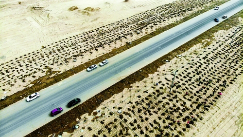 在南疆,長長的人工荒漠林帶和治沙網(wǎng)格相結(jié)合,護佑著縱貫塔克拉瑪干沙漠的公路,以及因選擇走沙漠公路而省了數(shù)百乃至上千公里路程的旅人。
