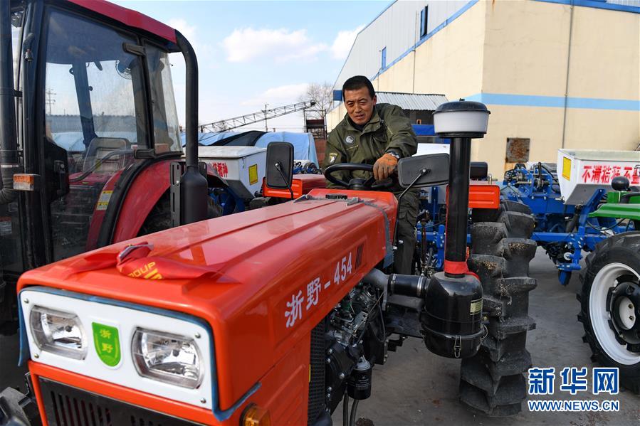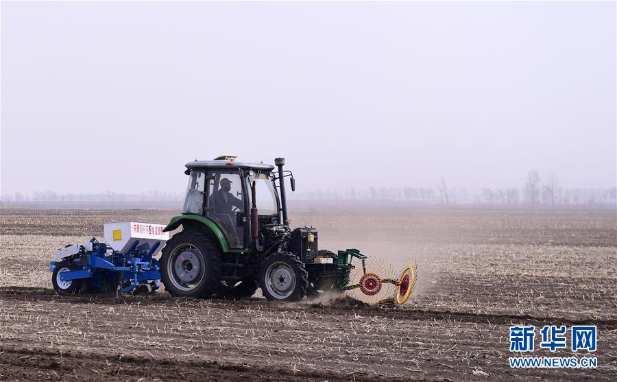 在榆樹市環(huán)城鄉(xiāng),農(nóng)民高春雨在檢修農(nóng)機(jī)(4月19日攝)。新華社記者 張楠 攝