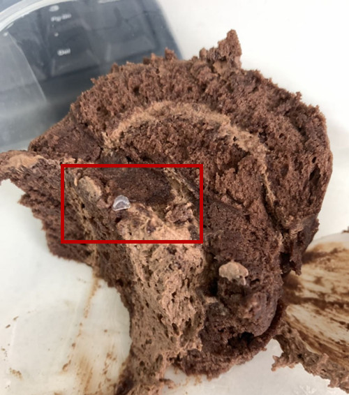 圖為巧克力卷中的異物(王女士供圖)