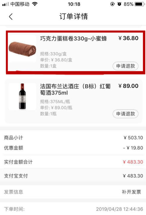 “這份巧克力卷是我28日通過盒馬APP下單的,想當(dāng)做早餐食用。在29日上午吃到第二口時(shí),發(fā)現(xiàn)蛋糕上附著著一塊異物,仔細(xì)一看是一塊疑似玻璃材質(zhì)的小碎片!蓖跖糠Q。