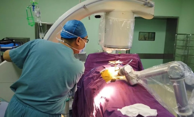 至善樓的一場脊柱手術現場,這雙手卻與眾不同,是一雙鐵手。
