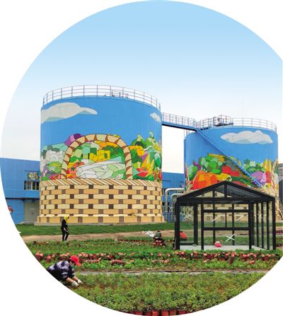 “百蔬園”戶外東側(cè)有兩座由功能性儲(chǔ)能罐改造而成的藝術(shù)建筑,由中央美院的藝術(shù)家團(tuán)隊(duì)歷時(shí)3個(gè)月設(shè)計(jì)、十幾人純手繪完成。巧妙將罐體變?yōu)椴嘶@,加上手繪蔬菜,塑造出一組3D立體菜籃的大地藝術(shù)景觀效果,是“百蔬園”最佳拍照打卡地之一。