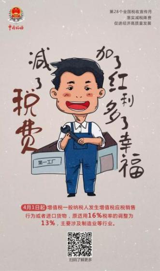 作為更大規(guī)模減稅降費(fèi)的“重頭戲”,深化增值稅改革系列舉措已于4月1日起正式實(shí)施。5月是深化增值稅改革后的首個(gè)申報(bào)期,也是社保費(fèi)率下調(diào)政策實(shí)施首月。為了讓納稅人和繳費(fèi)人進(jìn)一步了解減稅降費(fèi)新政,我們梳理了相關(guān)政策,并“隱藏”在這組手繪海報(bào)里。