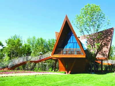 圖為北京世園會黑龍江園內(nèi)以黑龍江木骨架建筑和游牧民居為形態(tài)原型的森林樹屋。光明日報記者 郭紅松攝/光明圖片