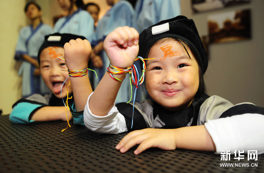 戴五彩線。新華網(wǎng)圖片 (程敏 攝)