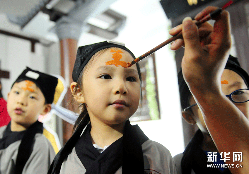 所謂畫額,即以雄黃涂抹小兒額頭,典型的方法是畫“王”字。沈從文在《邊城》中就曾寫到:“婦女、小孩子端午節(jié)要穿新衣,額角用雄黃蘸酒畫王字,吃魚吃肉……”