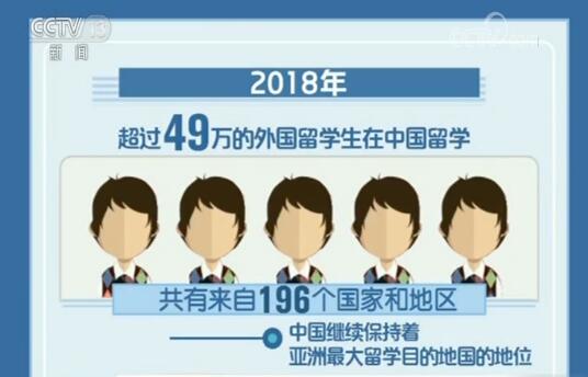 據(jù)統(tǒng)計(jì),2018年,共有來自196個(gè)國家和地區(qū)的超過49萬外國留學(xué)生在中國留學(xué),中國繼續(xù)保持著亞洲最大留學(xué)目的地國的地位。