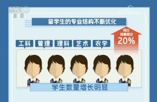 同時(shí),留學(xué)生的專業(yè)結(jié)構(gòu)不斷優(yōu)化。學(xué)習(xí)工科、管理、理科、藝術(shù)、農(nóng)學(xué)的學(xué)生數(shù)量增長明顯,同比增幅超過20%,顯示出我國自然學(xué)科專業(yè)教育越來越具有吸引力。