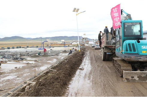 籃球場(chǎng)擴(kuò)建工地和異地搬遷房屋建造工地(中國(guó)網(wǎng)記者 王鑫攝)
