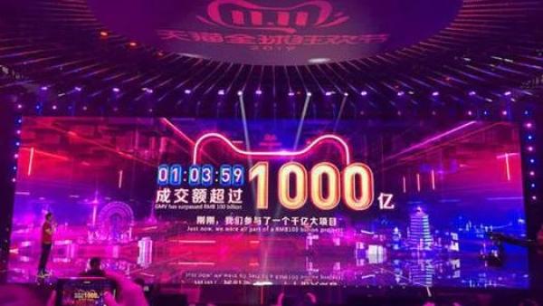 1小時(shí)3分59秒,天貓成交額破1000億。