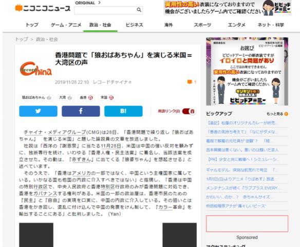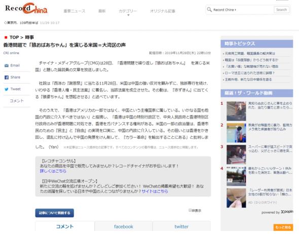 日本Record China網(wǎng)站11月28日轉(zhuǎn)發(fā)