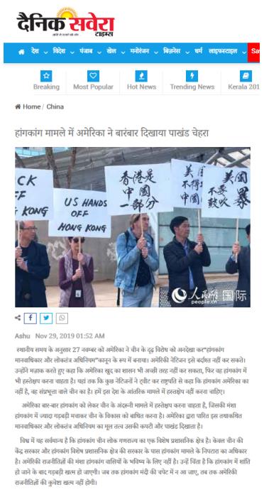 印度《每日晨報(bào)》網(wǎng)站11月29日轉(zhuǎn)發(fā)
