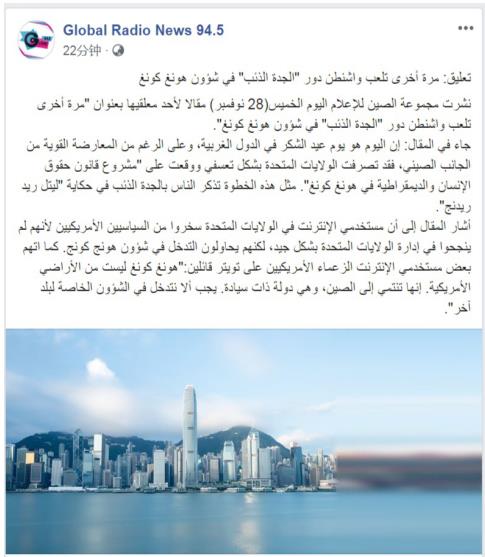 約旦環(huán)球電臺(tái)facebook賬號(hào)11月29日轉(zhuǎn)發(fā)