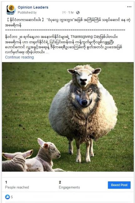 緬甸新媒體“意見領(lǐng)袖”11月29日轉(zhuǎn)發(fā)
