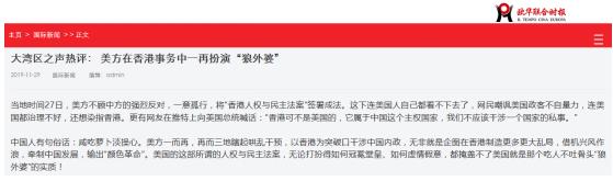 中國人有句俗話:咸吃蘿卜淡操心。美方一而再,再而三地瞎起哄亂干預(yù),以香港為突破口干涉中國內(nèi)政,無非就是企圖在香港制造更多更大亂局,借機(jī)興風(fēng)作浪,牽制中國發(fā)展,輸出“顏色革命”。美國的這部所謂的人權(quán)與民主法案,無論打扮得如何冠冕堂皇、如何虛情假意,都掩蓋不了美國就是那個(gè)吃人不吐骨頭“狼外婆”的實(shí)質(zhì)!