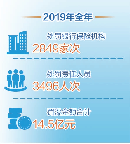 經(jīng)過持續(xù)整治金融市場亂象,一批重大非法集資案件得到查處。同時,2019年全年處罰銀行保險機構(gòu)2849家次,處罰責(zé)任人員3496人次,罰沒金額合計14.5億元。