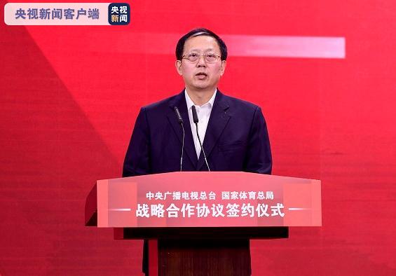 在今天的簽約儀式上,中宣部副部長、中央廣播電視總臺臺長慎海雄和國家體育總局局長、黨組書記茍仲文分別代表雙方簽訂戰(zhàn)略合作協(xié)議并致辭。