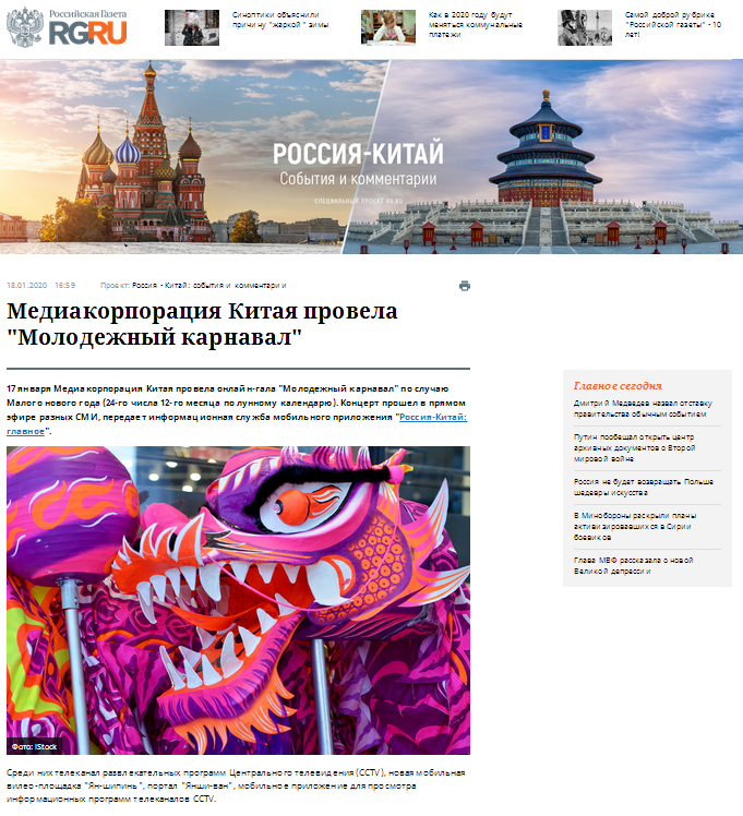 《俄羅斯報》:中國中央廣播電視總臺舉辦網(wǎng)絡(luò)春晚