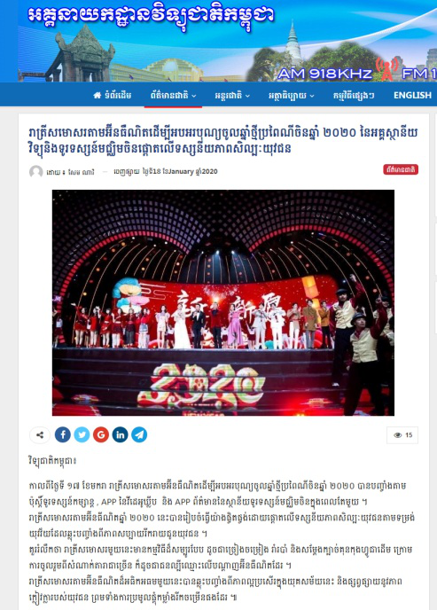 柬埔寨國家電臺官網(wǎng)和柬埔寨新聞部官網(wǎng)1月18日均轉(zhuǎn)發(fā)了總臺柬埔寨語報道《中央廣播電視總臺2020網(wǎng)絡(luò)春晚以年輕語態(tài)打造“青春嘉年華”》。報道稱,2020年網(wǎng)絡(luò)春晚以一種有趣的方式聚焦年輕用戶。晚會集結(jié)了正能量短視頻創(chuàng)作者、素人網(wǎng)紅等網(wǎng)絡(luò)用戶,共同帶來歌舞秀、功夫秀、脫口秀等豐富多樣的節(jié)目,傳遞出青春、美好的正能量。
