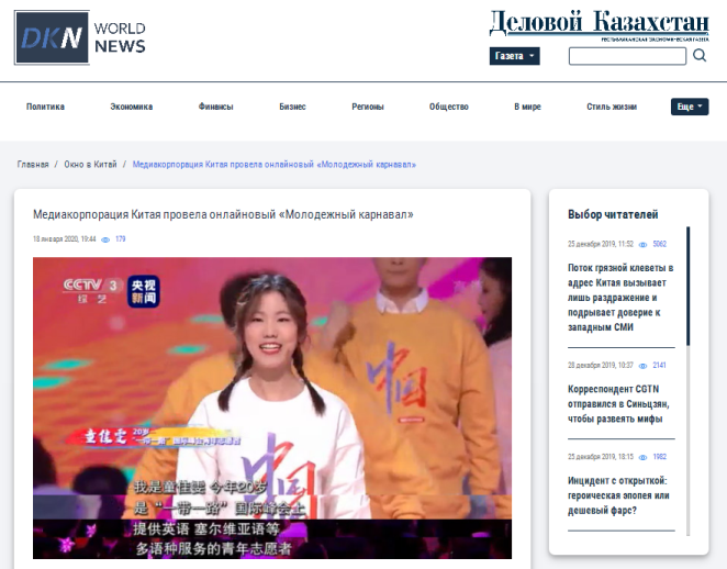 哈薩克斯坦最有影響力的國家經(jīng)濟周報《哈薩克斯坦實業(yè)報》官網(wǎng)1月18日轉(zhuǎn)引中俄頭條報道,稱中央廣播電視總臺在農(nóng)歷臘月二十三舉辦了網(wǎng)絡(luò)春晚。