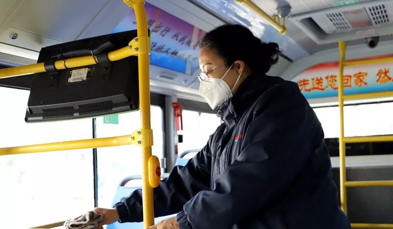 剛剛被選為黨員發(fā)展對象的于惠作為“姐妹班”的副班長,在這個春節(jié)主動要求堅守在春運崗位上。為落實做好疫情防控工作,她每天都做好車輛消毒保潔工作,積極做好防控準(zhǔn)備,不但自費配備了手持體溫測量儀,還有消毒液、口罩等。