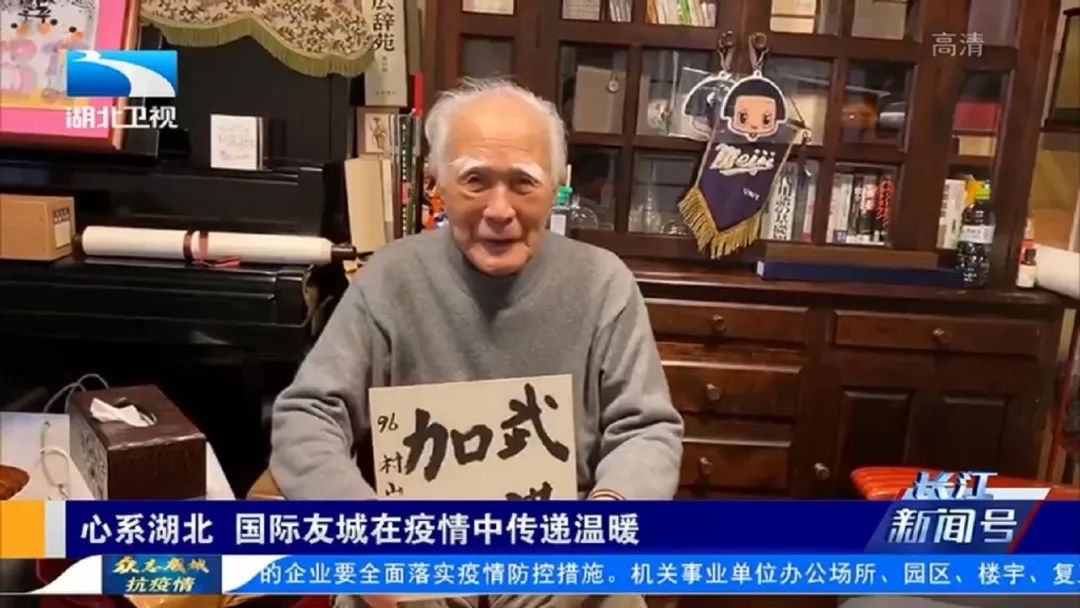 96歲高齡的日本前首相村山富市在其位于大分市的家中拍攝了一段視頻,為武漢抗擊新冠肺炎疫情加油。