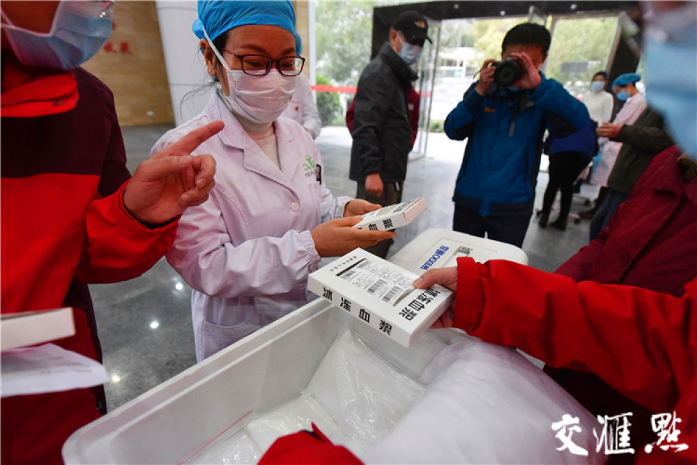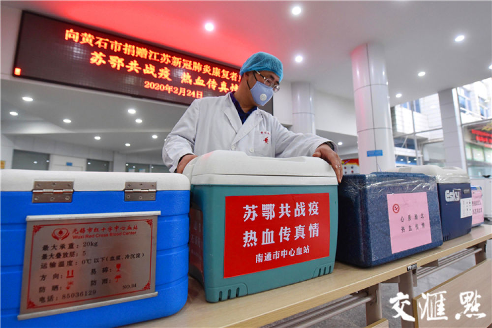 [黃石]2月24日下午,來自江蘇的3550毫升“愛心血漿”全部交托給黃石市血液中心。萬程鵬 攝