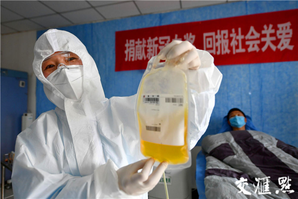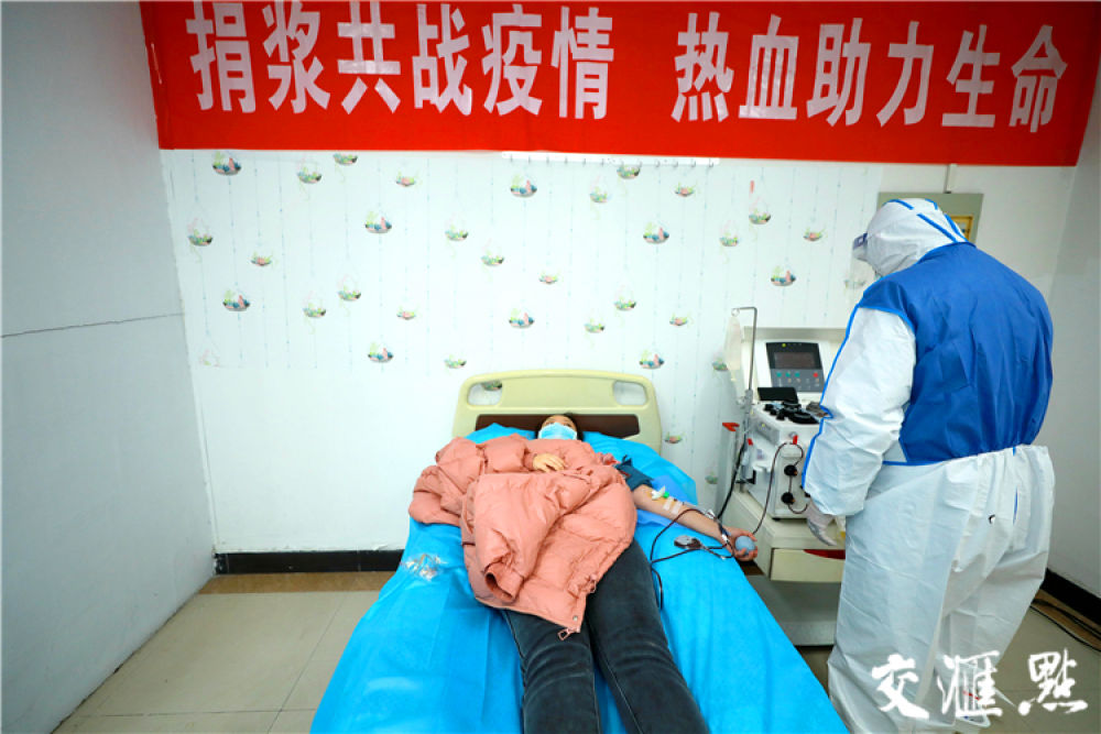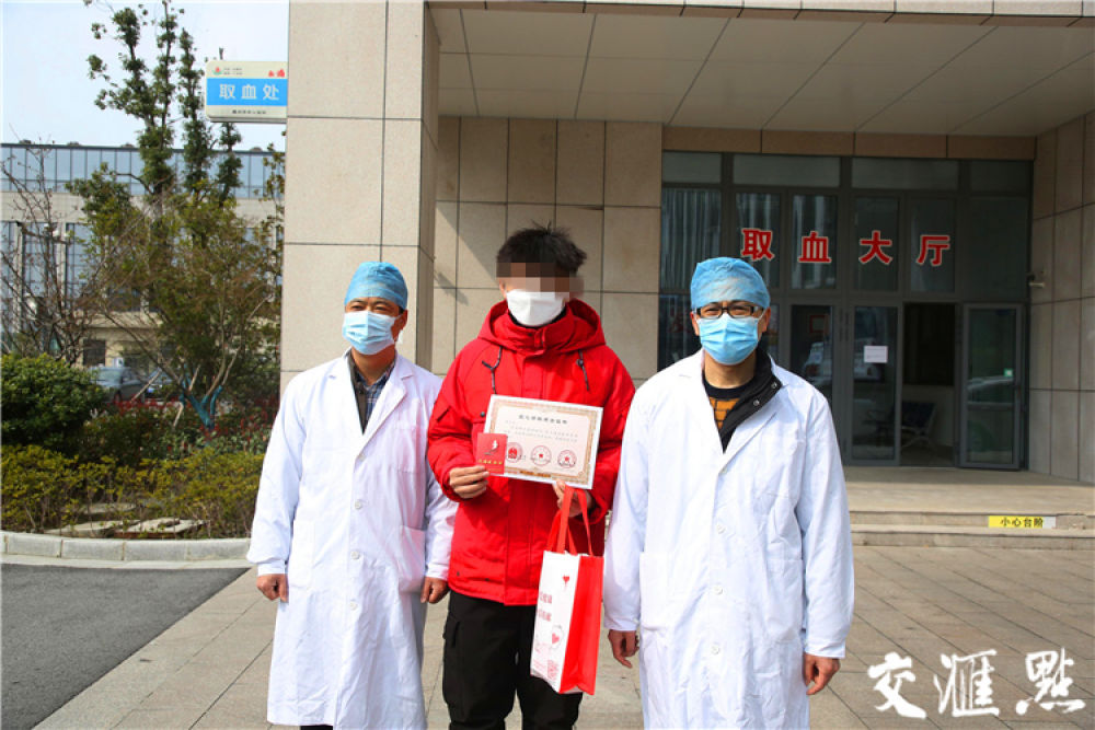 [鎮(zhèn)江]3月5日,四位新冠肺炎康復(fù)者隔離期滿后相約結(jié)伴捐獻(xiàn)血漿, 四人共獻(xiàn)1000毫升血漿,幫助最需要的病人抵抗病魔。潘鋒 萬凌云 攝