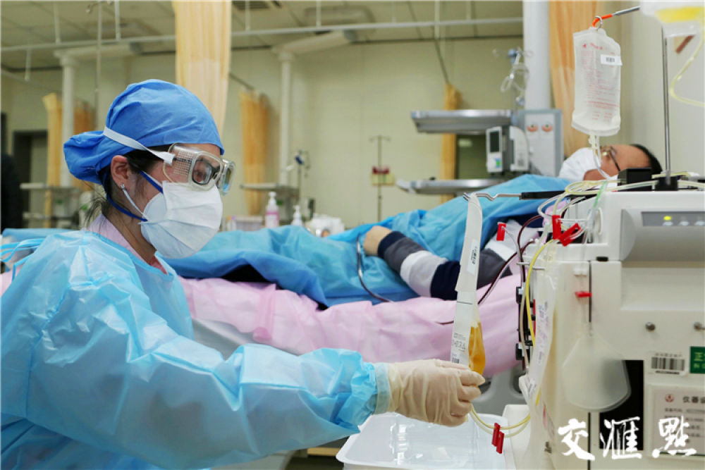 [無錫]2月17日,錫山區(qū)新冠肺炎確診治愈患者何某卷起袖子,在無錫市第五人民醫(yī)院急診ICU里,捐獻(xiàn)了無錫市第一例新冠恢復(fù)期血漿。欽嫣 攝