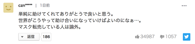 “有很多善良的中國人呀,真的很感謝,不知道你們那邊疫情怎么樣了呢。這樣的捐贈確實幫了日本很大的忙,但希望你們自己也要多加防護!