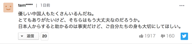 許多日本網(wǎng)友在推文下表達了感謝之意,甚至有人用中文發(fā)表了感謝的評論。