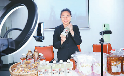 近來,為有效化解扶貧產(chǎn)品滯銷難題,江西省贛州市全南縣通過抖音、微信等“互聯(lián)網(wǎng)+消費(fèi)扶貧”的方式,切實(shí)解決貧困群眾生產(chǎn)的農(nóng)產(chǎn)品銷路窄、增產(chǎn)不增收等突出問題。圖為全南縣城廂鎮(zhèn)干部在為當(dāng)?shù)刎毨罕娋W(wǎng)絡(luò)直播銷售農(nóng)產(chǎn)品。尹其奇攝(人民視覺)