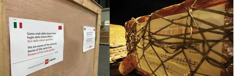 “同海之浪,同樹之葉”,“消失吧,黑夜!黎明時我們將獲勝”。這是中國寫在援助物資上的話,它們都表達了中國對命運與共的理解。