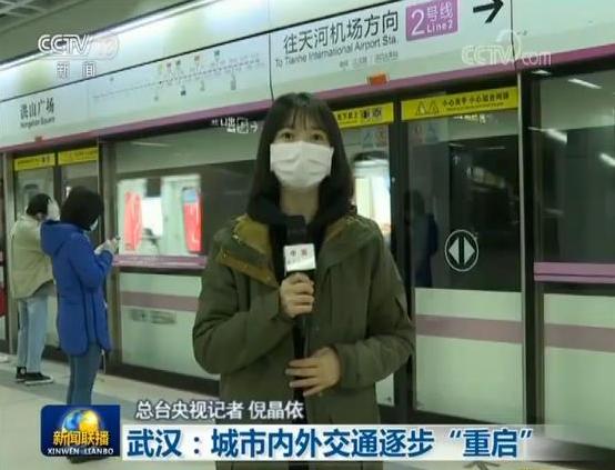 總臺央視記者 倪晶依:我現(xiàn)在是在武漢地鐵洪山廣場站。今天早上6:30,武漢部分軌道交通恢復(fù)運(yùn)營。