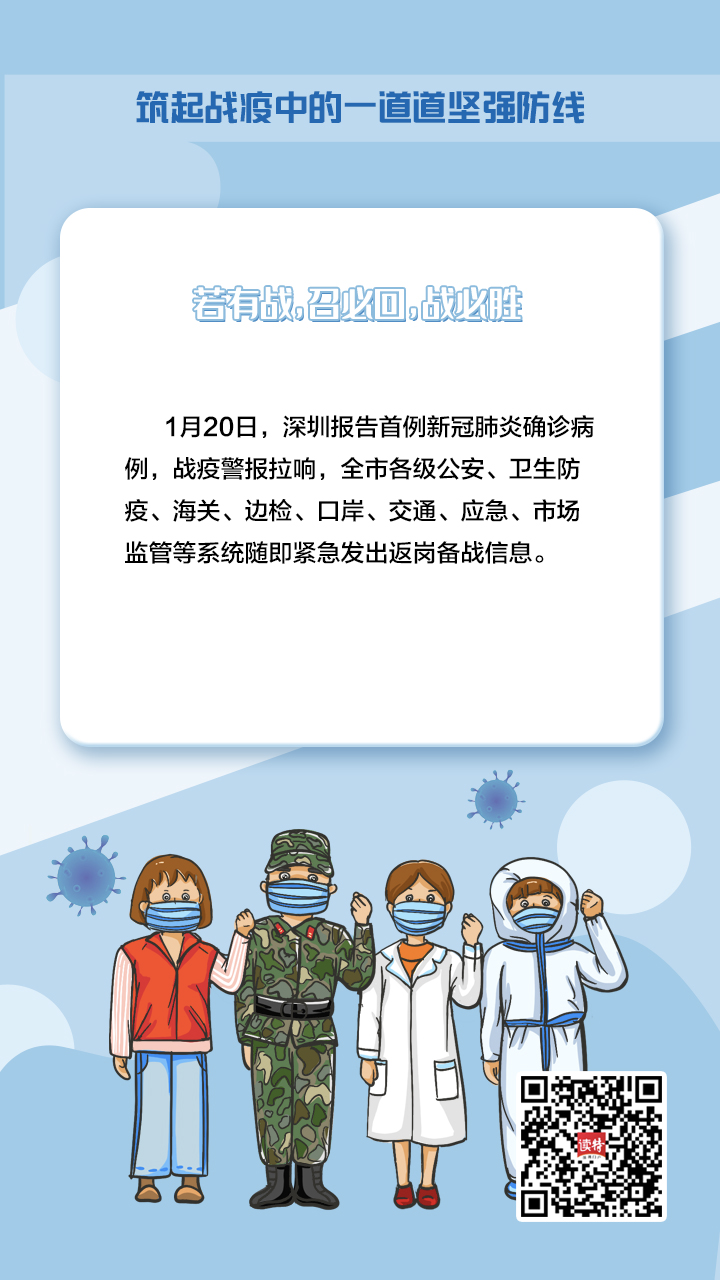 牢記習近平總書記的重要指示,深圳在新冠肺炎疫情防控的人民戰(zhàn)爭、總體戰(zhàn)阻擊戰(zhàn)中,鑄造了一支由不同“兵種”、精銳之師組成的守護者隊伍,堅定地筑起一道堅強屏障,守護好城市“外防輸入、內(nèi)防擴散”的門戶。