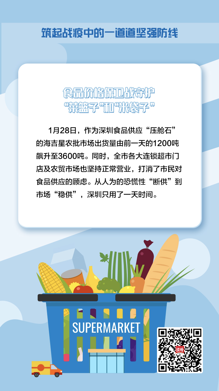 面對抗擊疫情早期出現(xiàn)的市場不穩(wěn)定情況,深圳市場監(jiān)管部門果斷出手,提出保價格、保質(zhì)量、保供應的“三!辈呗,一手筑牢食品農(nóng)產(chǎn)品供應鏈,一手重振防疫物資供給鏈,以充足的物資補給,將食品和防疫物資的價格穩(wěn)定在正常水平上。