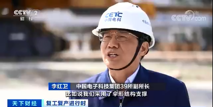 中國(guó)電子科技集團(tuán)39所副所長(zhǎng) 李紅衛(wèi):我們這次在設(shè)計(jì)上采用了很多新的技術(shù),比如說(shuō)傘形結(jié)構(gòu)支撐,這個(gè)反射體重達(dá)450噸,要把這么大的反射體支撐起來(lái),所以采用整體吊裝的方式進(jìn)行。