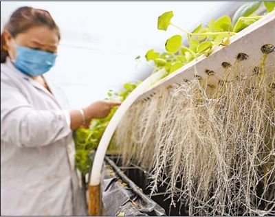 3月20日,在寧夏西吉縣一家馬鈴薯科技示范園,工作人員查看水培式脫毒苗的生長(zhǎng)情況。