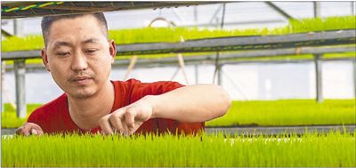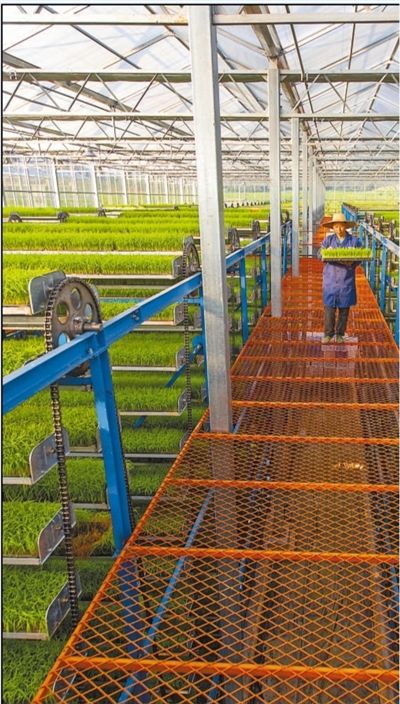 4月12日,江西吉水縣醪橋鎮(zhèn)的全自動(dòng)智能育秧中心內(nèi),農(nóng)技人員在檢查秧苗。