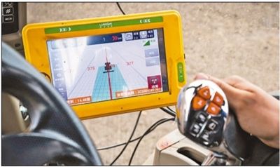 4月20日,在黑龍江哈爾濱市雙城區(qū),工作人員借助導(dǎo)航設(shè)備操作拖拉機(jī)播種玉米。