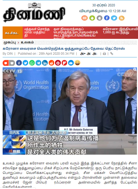 印度《每日鐘聲報(bào)》:世衛(wèi)組織號(hào)召加強(qiáng)團(tuán)結(jié)合作
