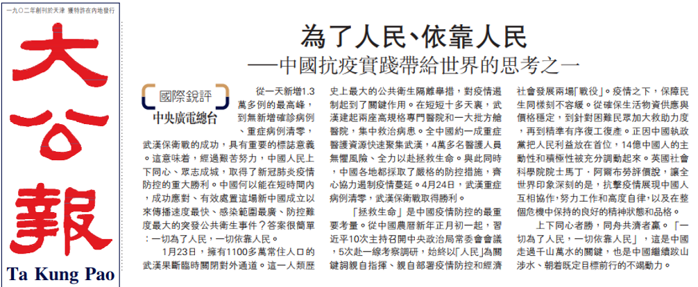4月30日,印度尼西亞最大的電臺(tái)新聞網(wǎng)站艾爾辛達(dá)電臺(tái)刊發(fā)題為《疫情大考面前,彰顯中華優(yōu)秀傳統(tǒng)文化底色——中國(guó)抗疫實(shí)踐帶給世界的思考》的文章。文章稱,支撐中國(guó)在短時(shí)間內(nèi)取得疫情防控重大勝利的力量,來(lái)自于中國(guó)最高領(lǐng)導(dǎo)人習(xí)近平指揮這場(chǎng)戰(zhàn)役中以人為本理念的精準(zhǔn)部署。而以人為本的理念,正是植根于深厚的中華傳統(tǒng)文化土壤之中。