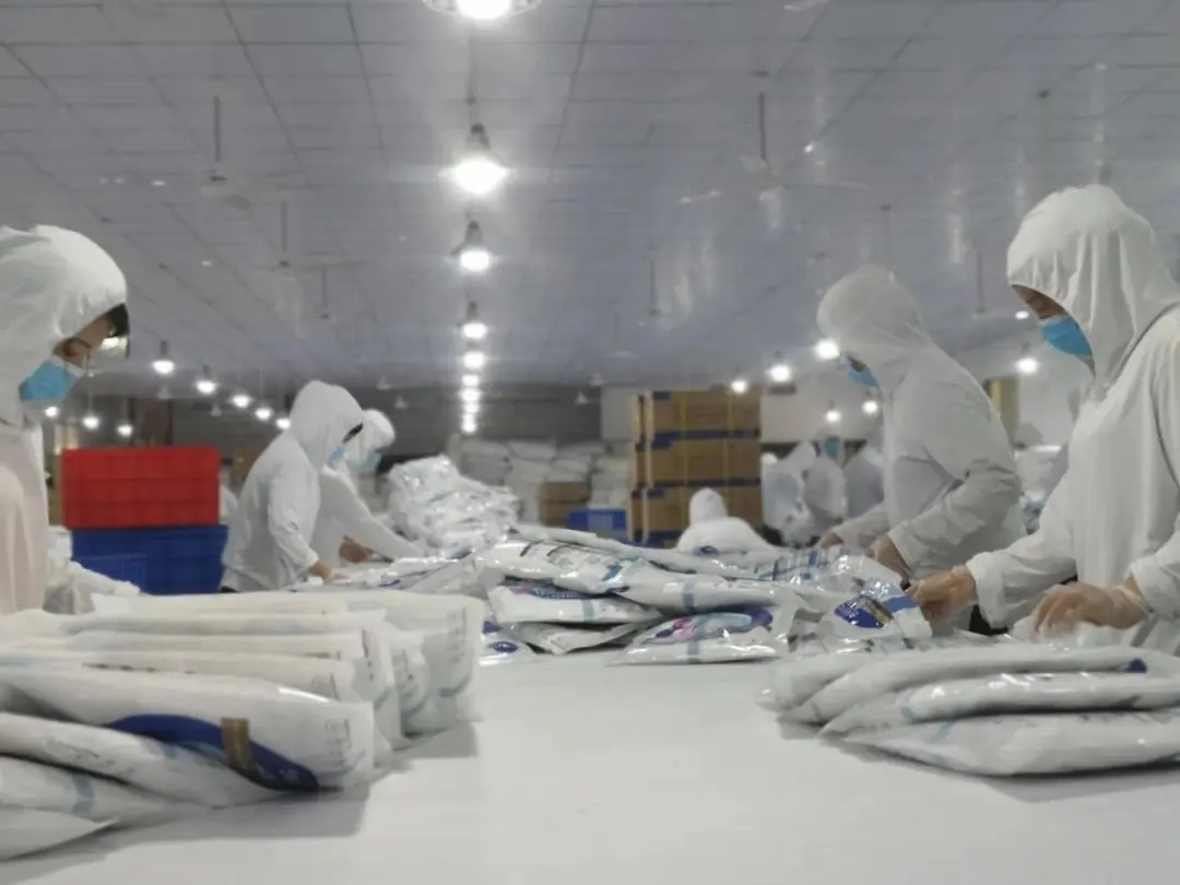 在華沙利的無菌防塵車間,40多條生產(chǎn)線開足馬力趕制防護服。公司董事長王貴表示,公司在2月中下旬已實現(xiàn)量產(chǎn),日均產(chǎn)能達4萬件左右,目前基本每天都是滿負(fù)荷運作,“訂單量很大,最高峰(每日)達到7萬件!