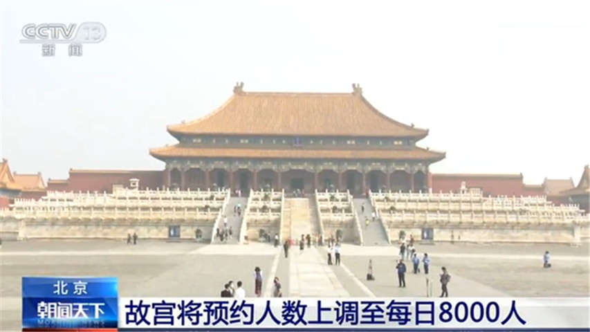 央視網(wǎng)消息:根據(jù)北京市文物局官網(wǎng)發(fā)布的消息,從明天(5月12日)起,故宮博物院每日預(yù)約觀眾數(shù)量從5000人上調(diào)為8000人。