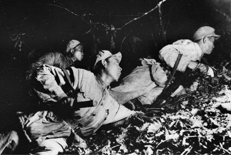 在1952年秋季的上甘嶺戰(zhàn)役中,中國(guó)人民志愿軍與6萬(wàn)多敵人浴血激戰(zhàn)43天,打退其900多次進(jìn)攻,堅(jiān)守住了陣地,斃傷俘敵2.5萬(wàn)余人,體現(xiàn)了大無(wú)畏的革命英雄主義和愛(ài)國(guó)主義、國(guó)際主義精神。圖為堅(jiān)守在坑道里的戰(zhàn)士夜間出擊。 新華社發(fā)