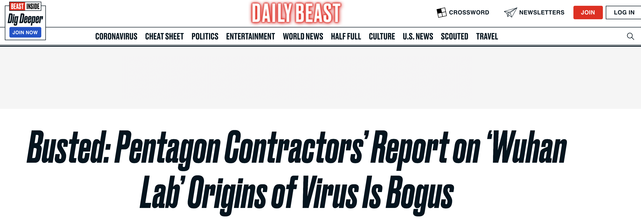 △《野獸日報》報道:五角大樓合同商偽造了“病毒來自武漢實驗室”的報告