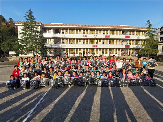 武警官兵為桑植縣空殼樹鄉(xiāng)中心小學(xué)孩子們送來學(xué)習(xí)用品。
