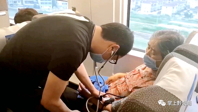 5月24日傍晚,在貴陽(yáng)開往南京的G1378次列車上,一位患有膽管癌的老人突發(fā)高血壓癥狀。老人的兒子傅先生看到母親手抖且表情痛苦,趕緊向列車工作人員請(qǐng)求幫助。
