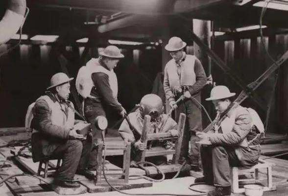 原南京長(zhǎng)江大橋潛水班工人龐國(guó)江說(shuō):“超過(guò)60米以后,我們就感到身體呀,頭腦發(fā)漲,下到69米的時(shí)候,那就更厲害了,嘴唇講話發(fā)抖了,聲音尖聲怪叫,好像不像我講話的聲音一樣,到最后,我們就下到72米,下去以后,在里面工作20分鐘,20分鐘以后就要上來(lái)!