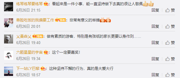 網(wǎng)友留言:“看起來(lái)是一件小事,但能一直堅(jiān)持真的讓人敬佩”“愛(ài)護(hù)環(huán)境欣賞了風(fēng)景還能運(yùn)動(dòng)大家一起來(lái)效仿一下!”“希望大家都能從我做起,不亂扔垃圾”